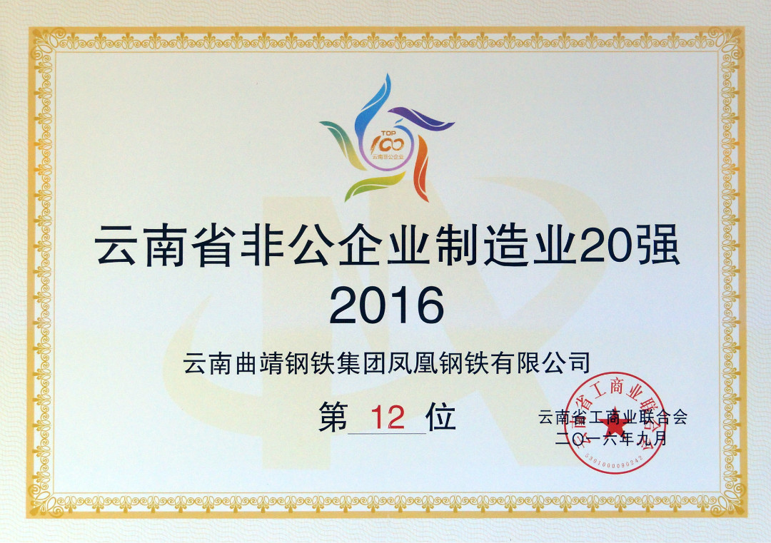 2016非公制造業(yè)20強(qiáng)第12強(qiáng)