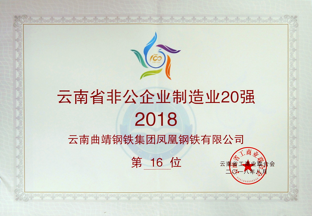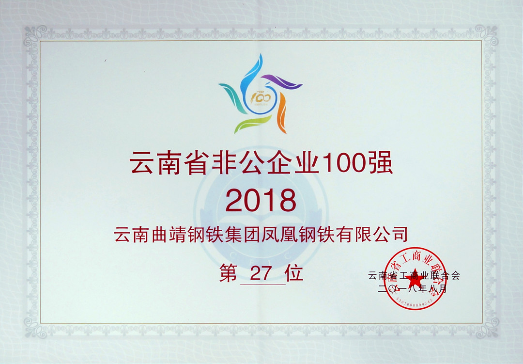 2018云南省非公百強(qiáng)第27強(qiáng)