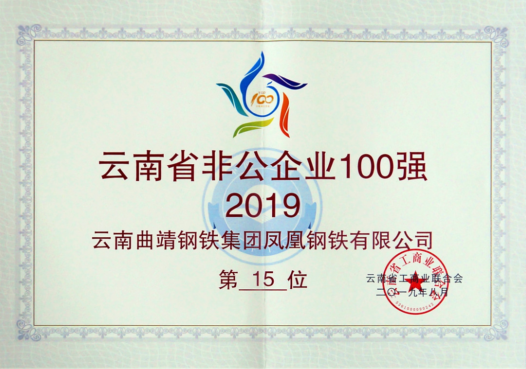 2019云南省非公百強(qiáng)第15強(qiáng)